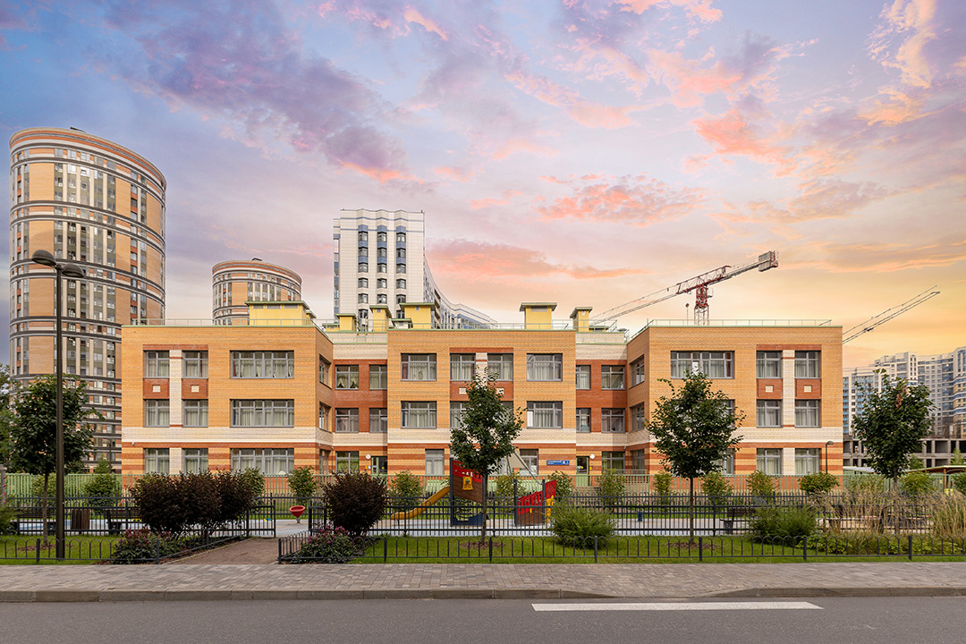 - На территории: работает детский сад, строится школа, есть зарядка для электромобиля.